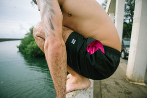 Turn heads poolside in this summer's newest 5" compression swim trunk designs.