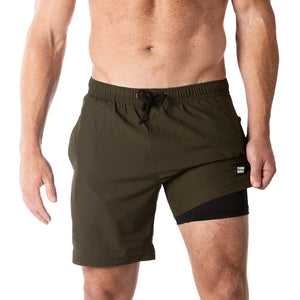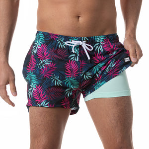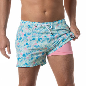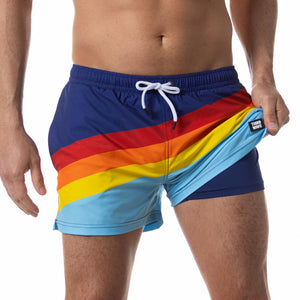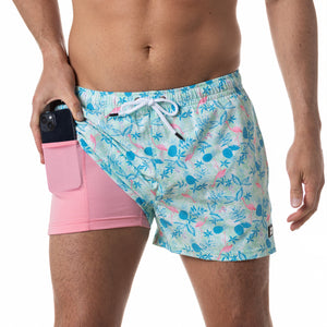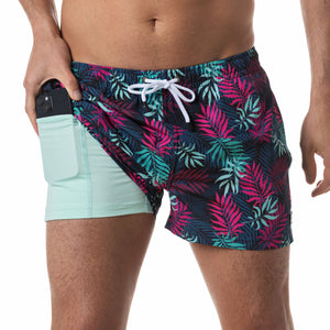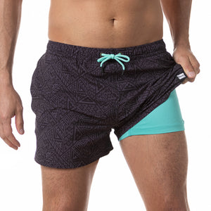 Turn heads poolside in this summer's newest 5" compression swim trunk designs.